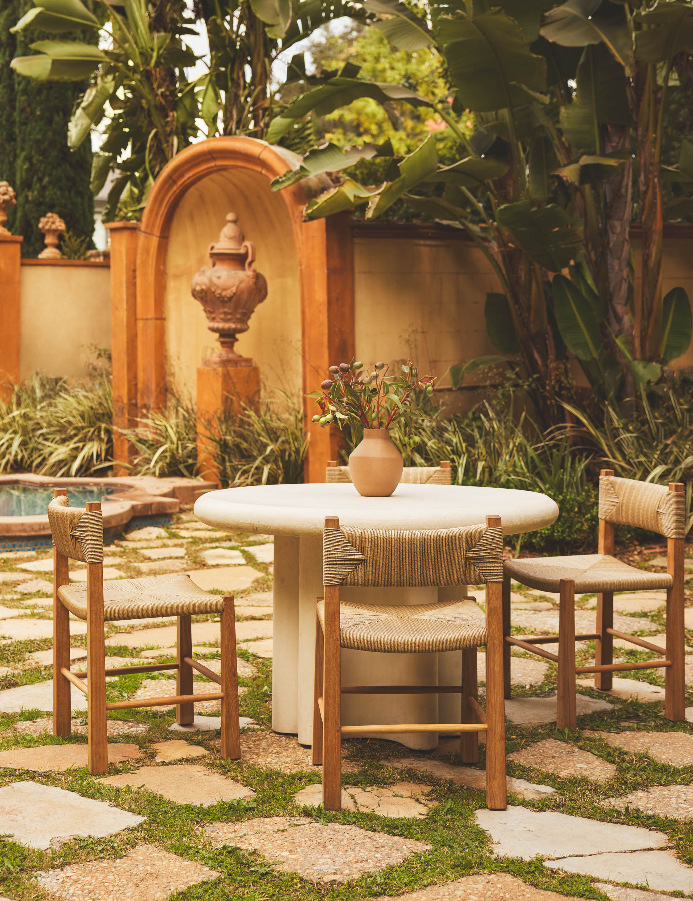 - Teak wood naturally contains water-repellant oils and resins, making it well-suited to outdoor designs. Teak frames offer strength and durability in the elements—either occasionally treated to hold their warmth or left unsealed for a beautiful gray patina. Lightly sanding the wood can restore the natural tone. Teak furniture should be covered or stored indoors during inclement weather or when not in use.