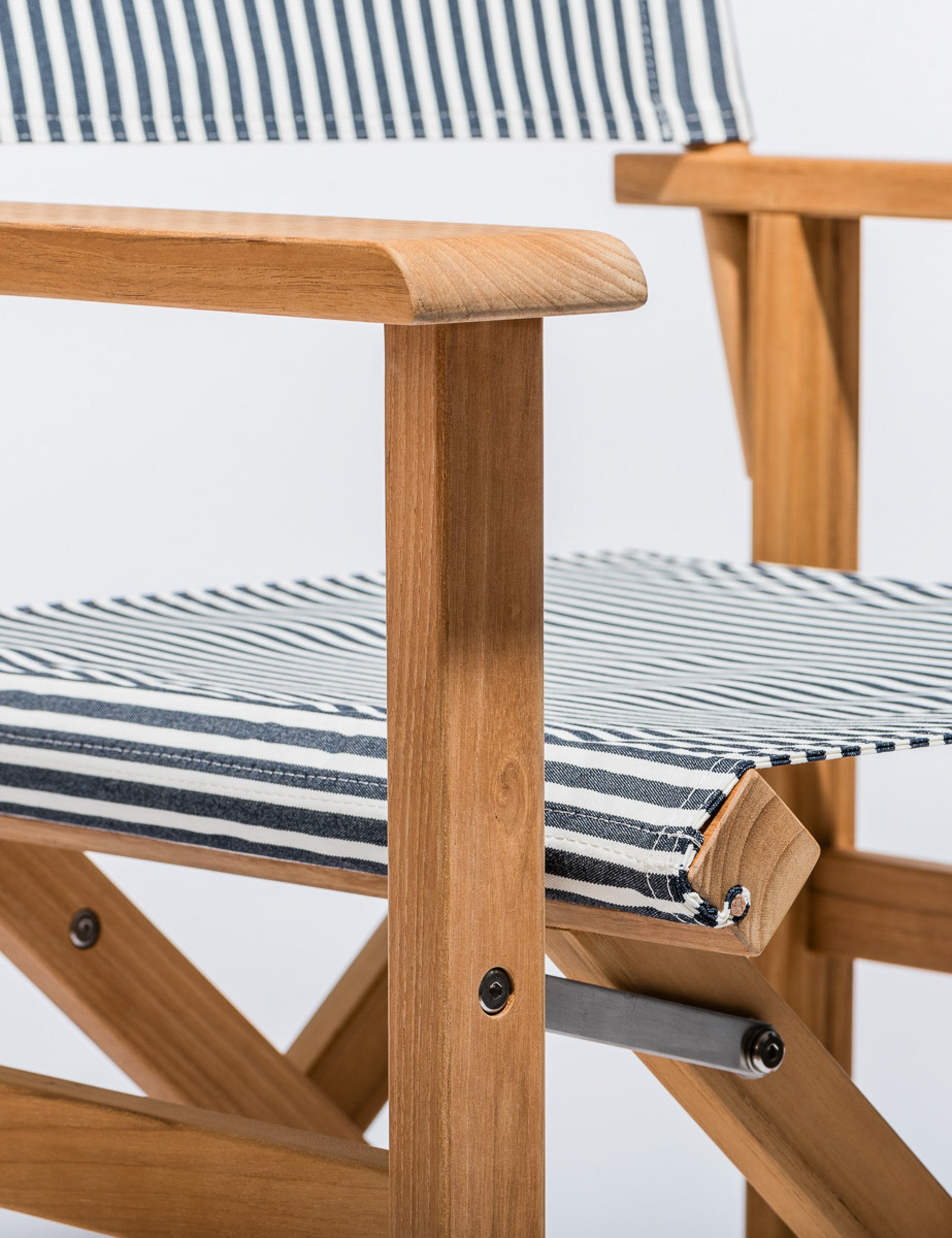 The Director’s Chair is made with a premium coated hardwood frame—designed for patios, terraces, and pool decks. The sling seat and backrest are removable for easy cleaning, plus the frame folds down for convenient storage. We love this chic accent chair for enjoying a touch of fresh air in style.