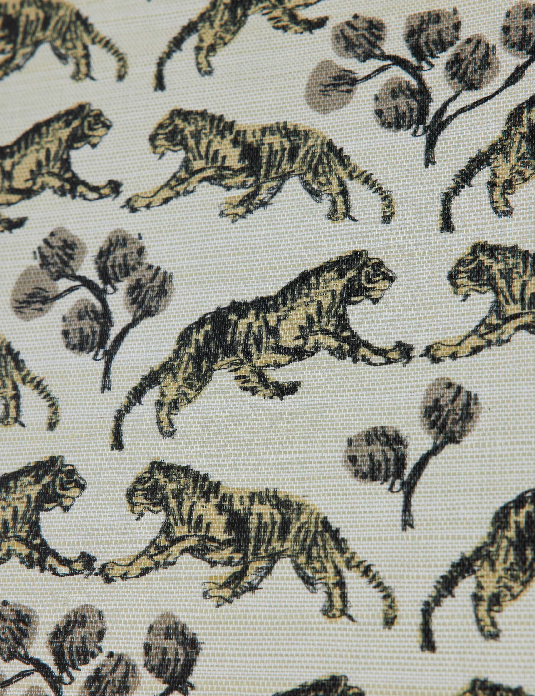 Vintage inspiration gets a fresh touch in this unique wallpaper design. Drawn by Sarah's son and styled into an intricate motif, this tiger print brings graphic intrigue as a grasscloth wallpaper, offering depth and character while grounding a space with textural appeal. This wallpaper is from our exclusive Sarah Sherman Samuel collaboration and features all the trademarks of her warm, edited style. Vintage inspiration gets a fresh touch in this unique wallpaper design. Drawn by Sarah's son and styled into an intricate motif, this tiger print brings graphic intrigue as a grasscloth wallpaper, offering depth and character while grounding a space with textural appeal. This wallpaper is from our exclusive Sarah Sherman Samuel collaboration and features all the trademarks of her warm, edited style.