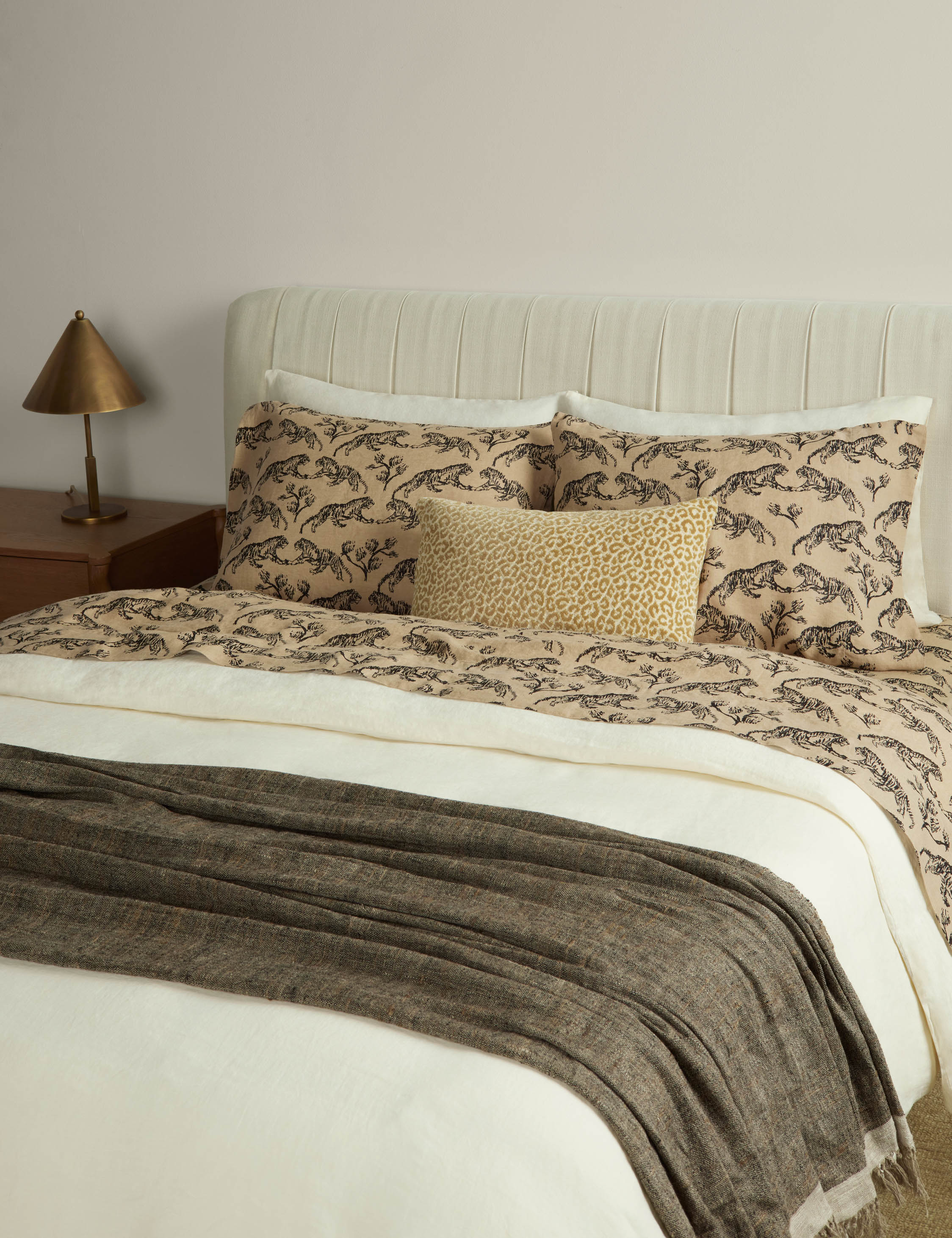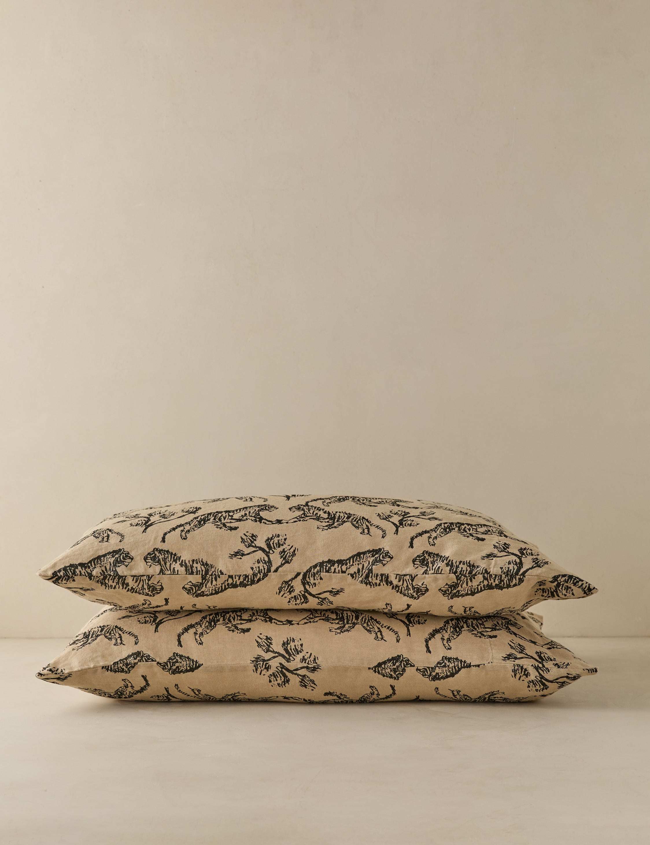 Vintage inspiration meets sustainable comfort in these hemp pillowcases. Hemp is a forgotten fabric that is in revival because of its sustainable impact and durable fibers—meaning your bedding lasts longer. Drawn by Sarah's son and styled into an intricate motif, the tiger print offers graphic intrigue for a sophisticated feel. This set is from our exclusive Sarah Sherman Samuel collaboration and features all the trademarks of her warm, edited style.