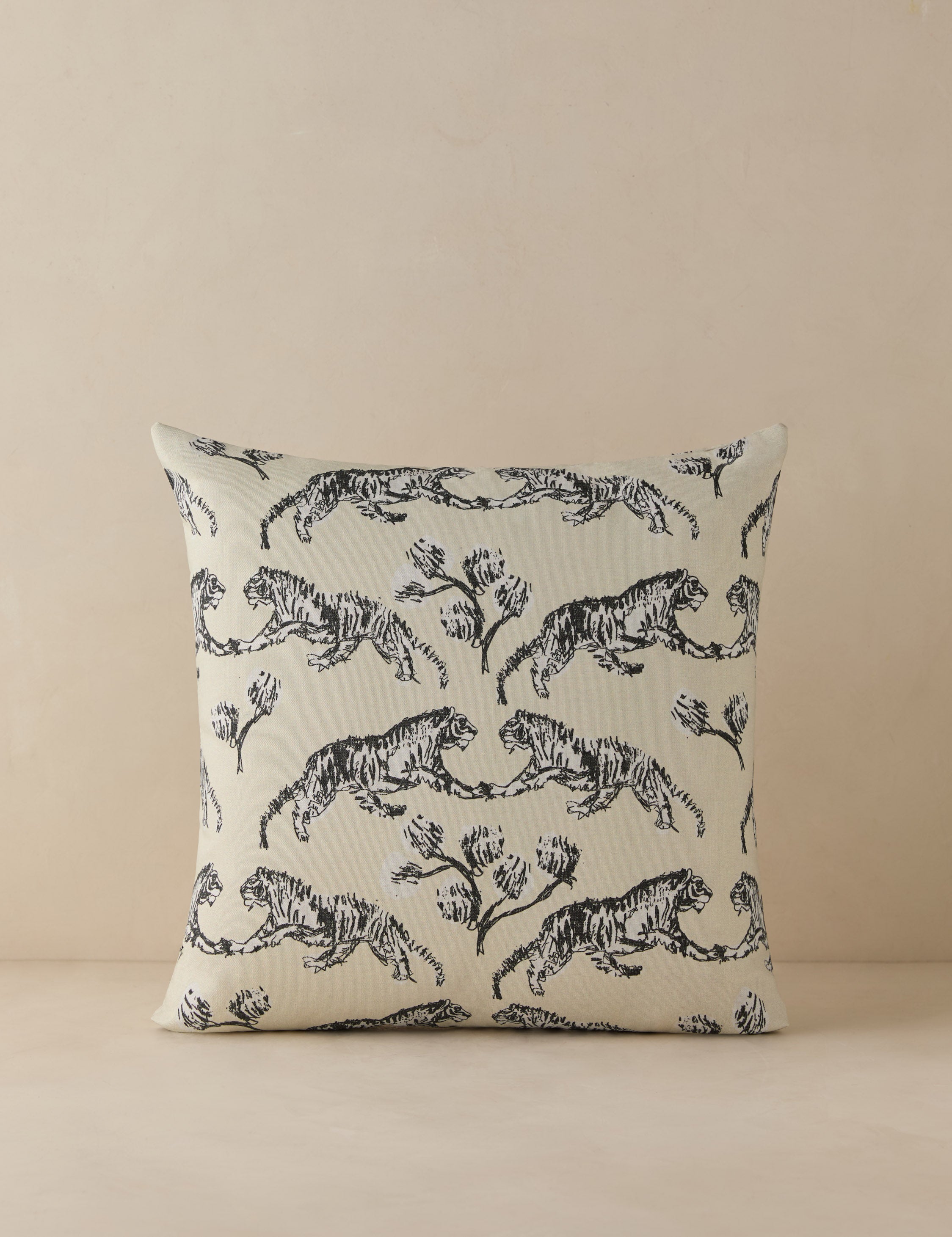 Vintage inspiration gets a fresh touch in this unique throw pillow. Drawn by Sarah's son and styled into an intricate motif, this tiger print offers graphic intrigue for a sophisticated feel that you can bring outdoors. This outdoor pillow is from our exclusive Sarah Sherman Samuel collaboration and features all the trademarks of her warm, edited style.