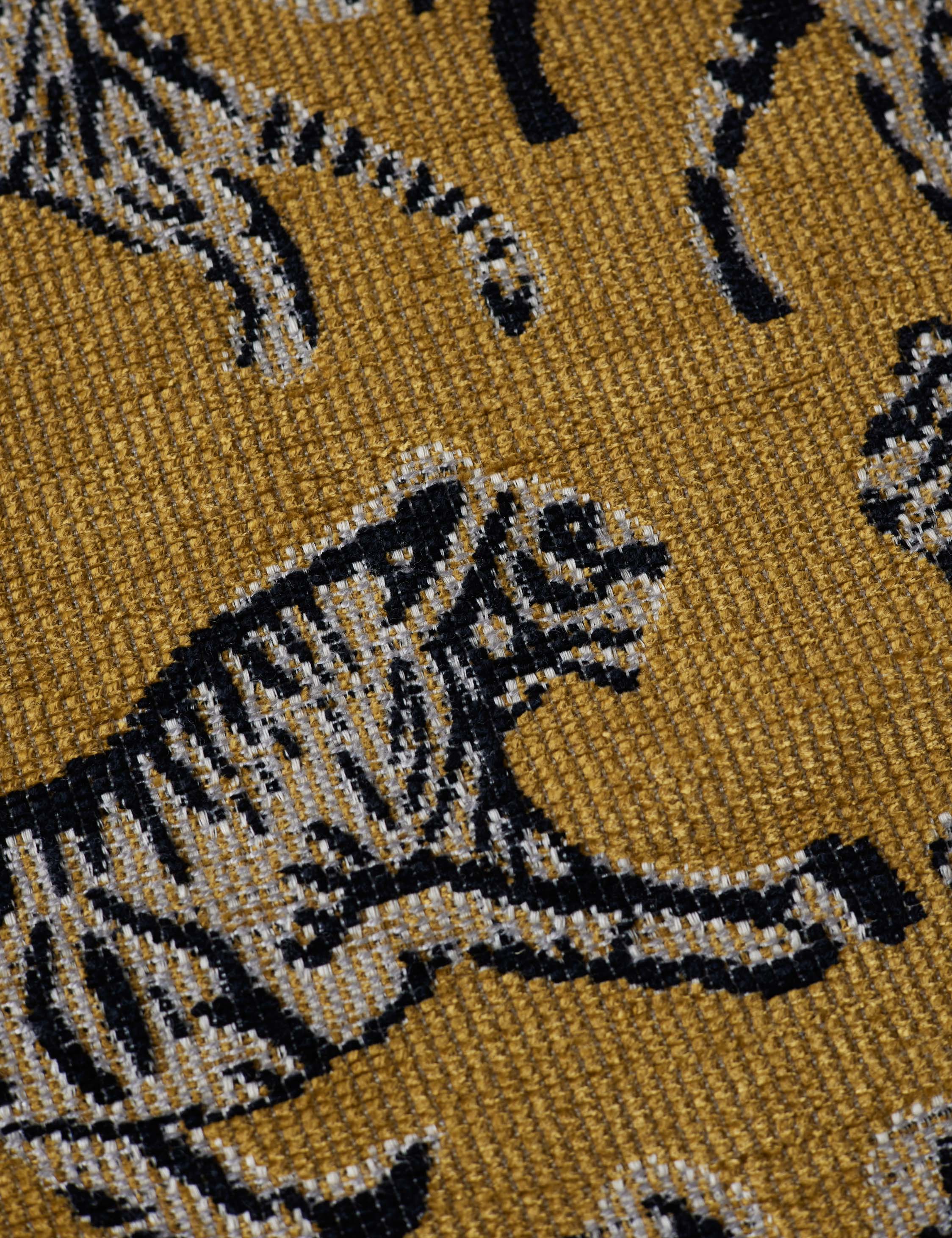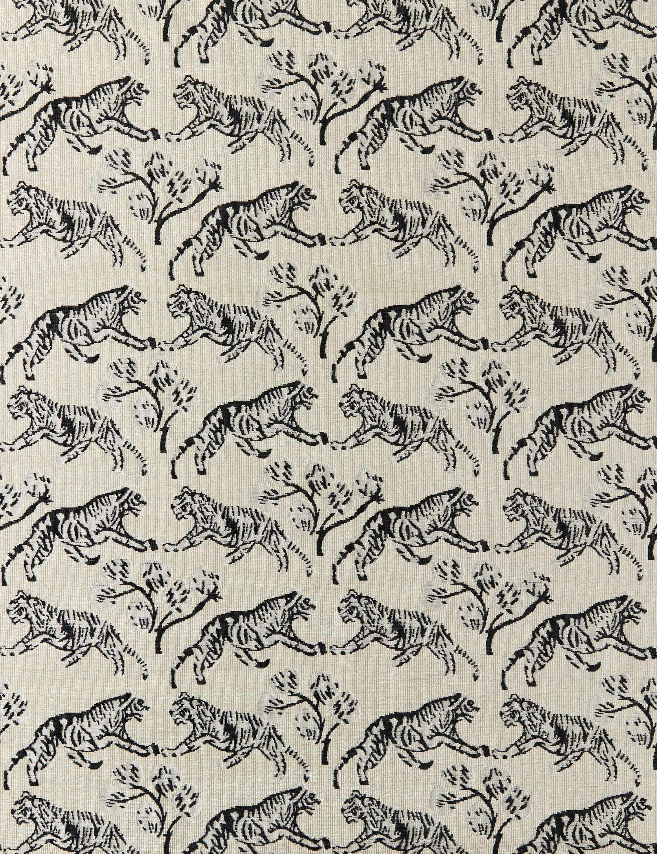 Create a custom element for your home or bring new life to a vintage piece of furniture with this fabric, available by the yard. A playful tiger motif brings graphic intrigue to this textile design for a sophisticated feel in any room. This fabric is from our exclusive Sarah Sherman Samuel collaboration and features all the trademarks of her warm, edited style.