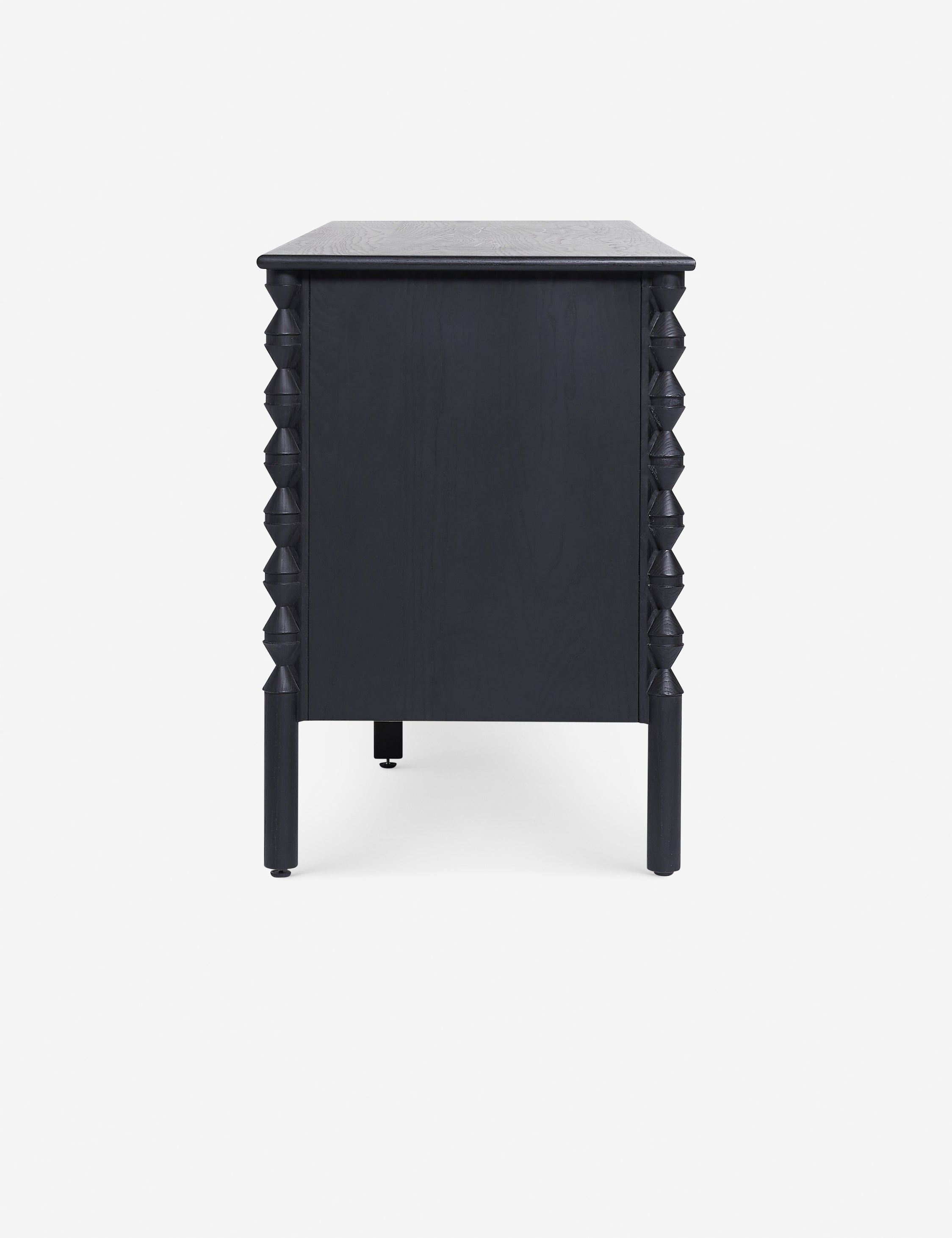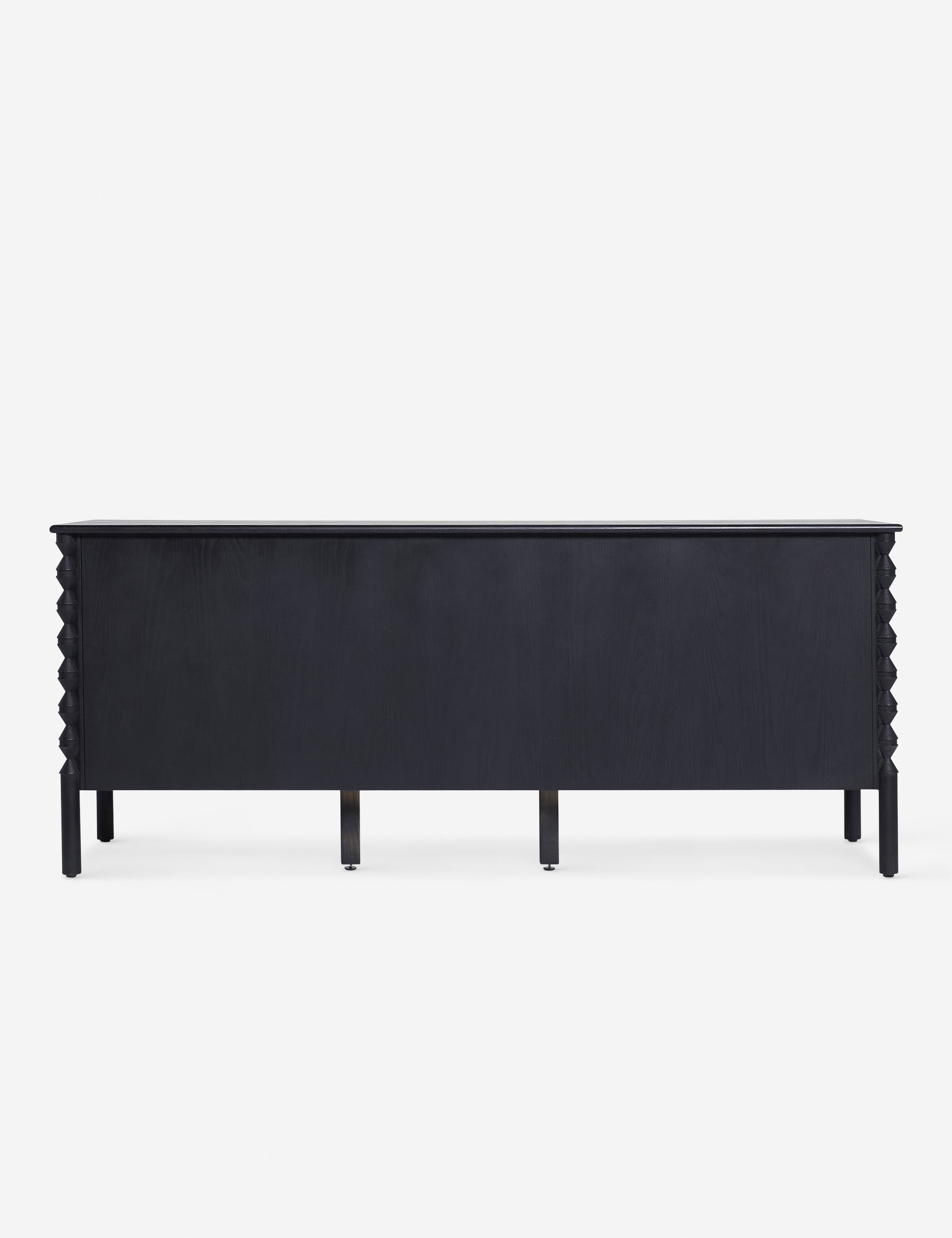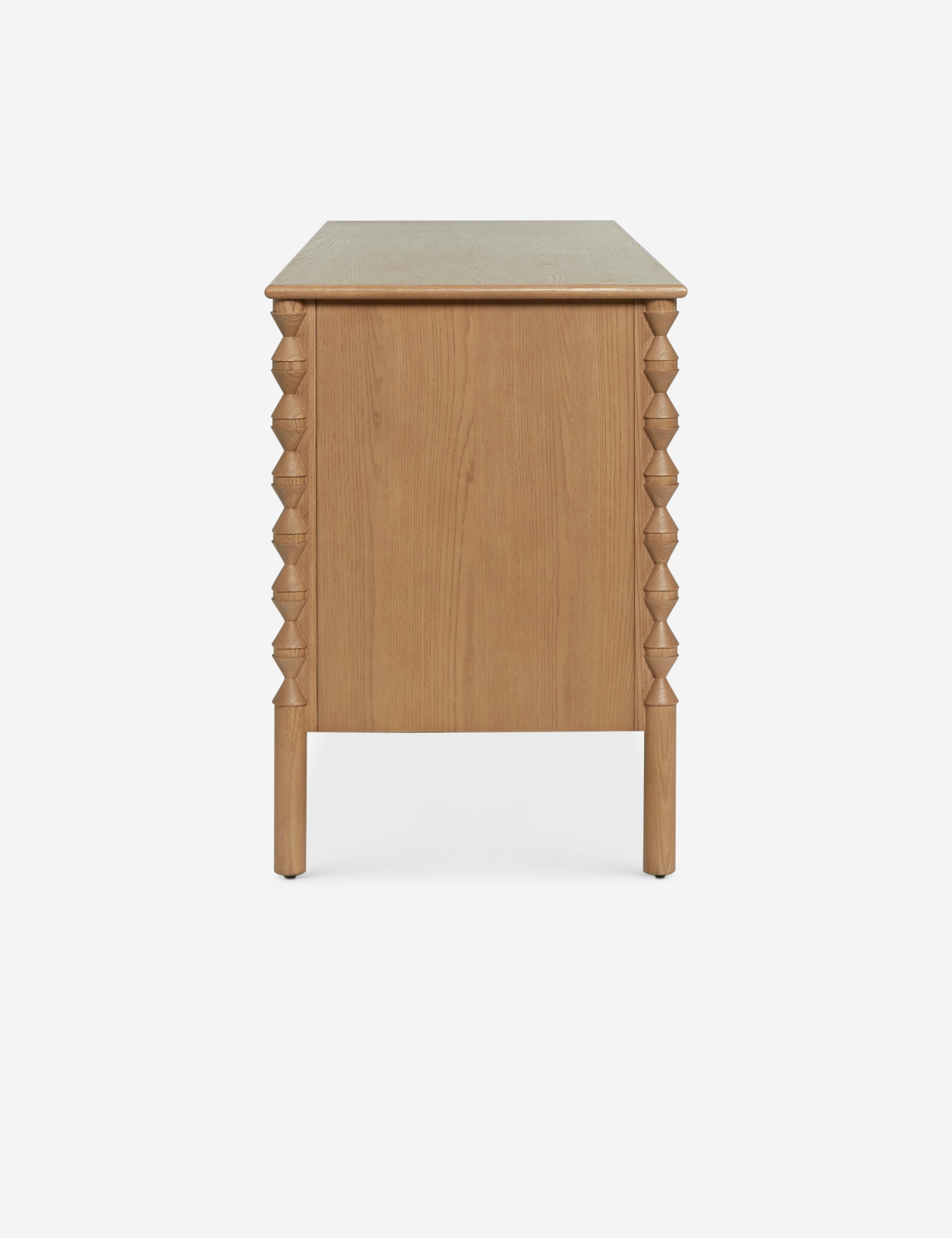 A traditional design offers ample storage in this sideboard from the exclusive Ginny Macdonald collection for Brightselects. Inspired by Ginny's English heritage and fondness for handcrafted details, each piece in the collection fuses traditional notes from her British roots with her California lifestyle. Turned legs add a touch of drama to the sideboard's classic silhouette featuring a mix of cabinets, drawers, and open shelving for practical everyday appeal.