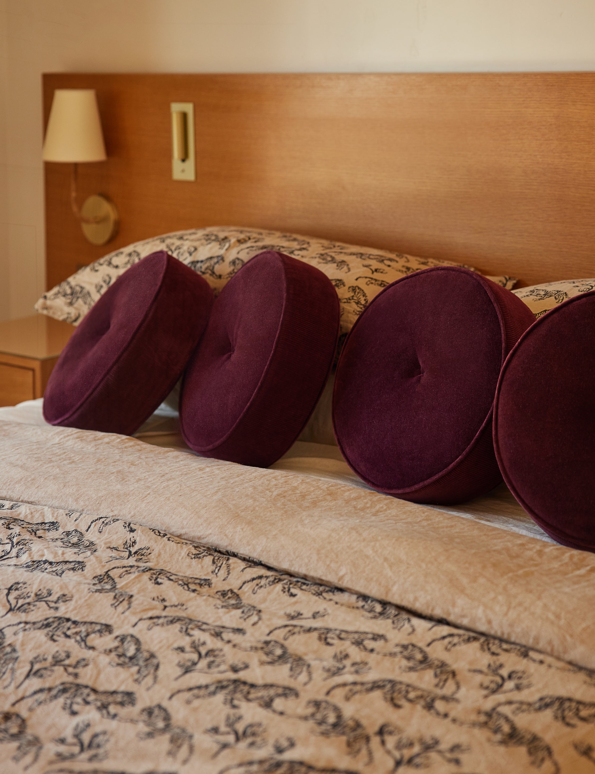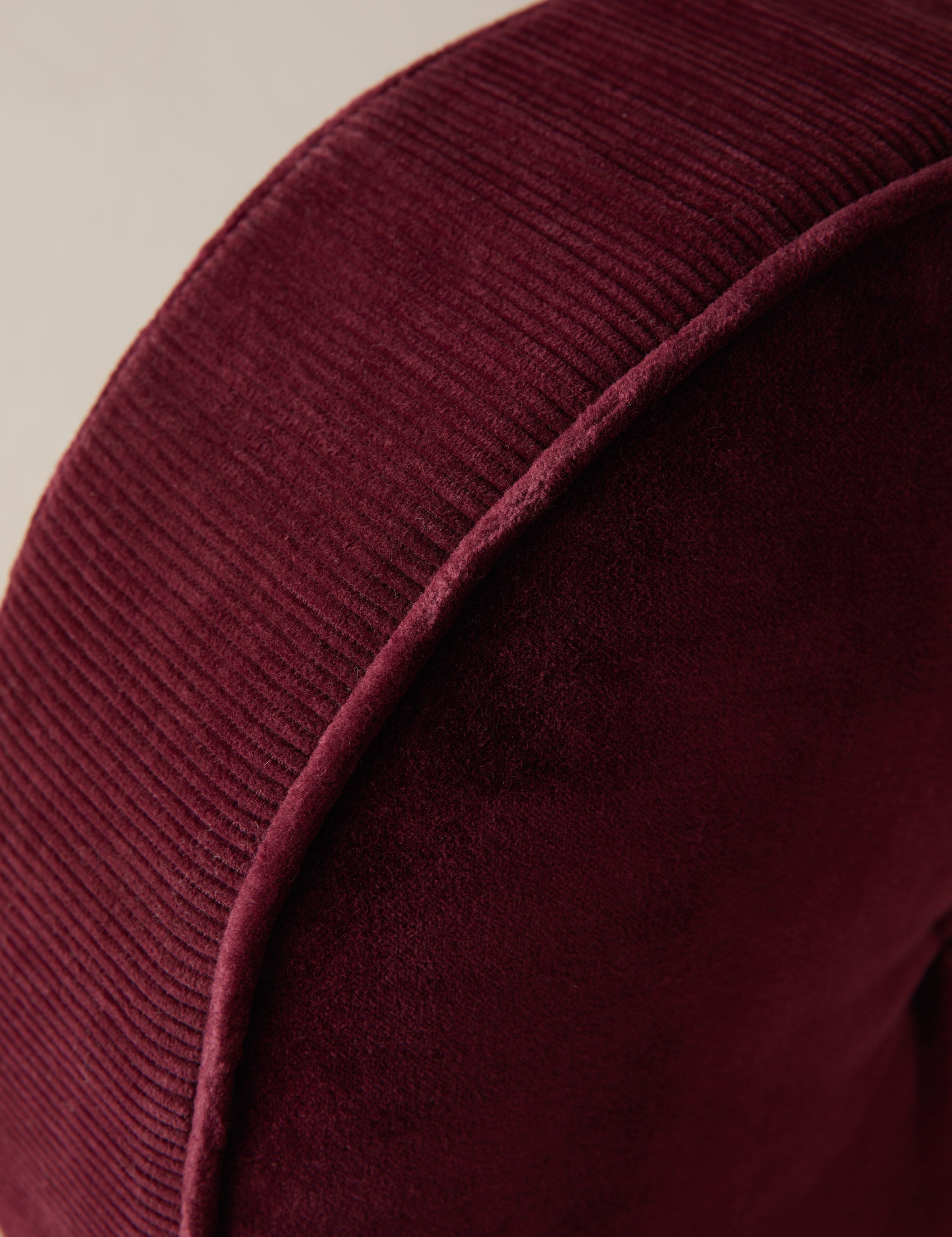 Retro elegance gets a fresh update with this round velvet throw pillow. With piped edges and ribbed siding, this decorative pillow adds a playful touch to any sofa or accent chair. This piece is from our exclusive Sarah Sherman Samuel collaboration and features all the trademarks of her warm, edited style.