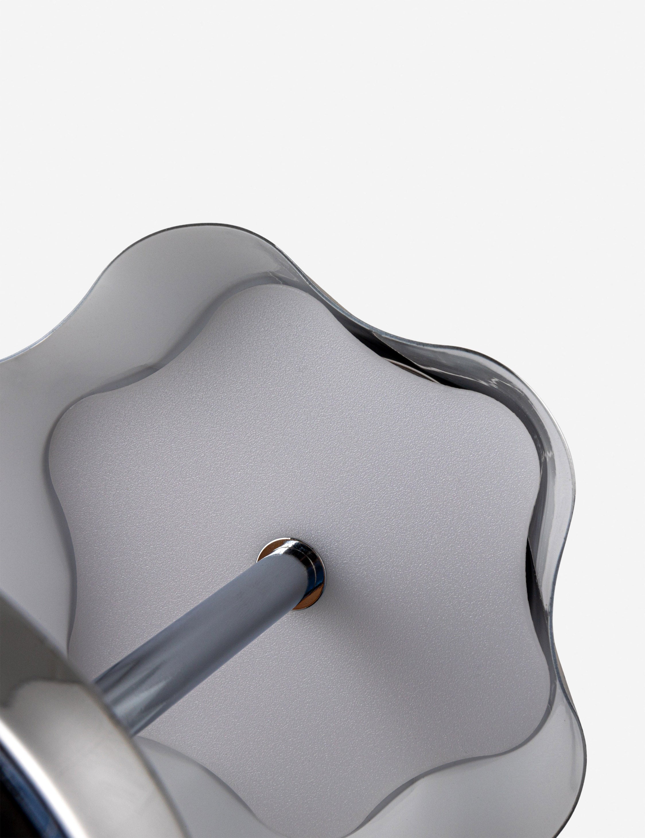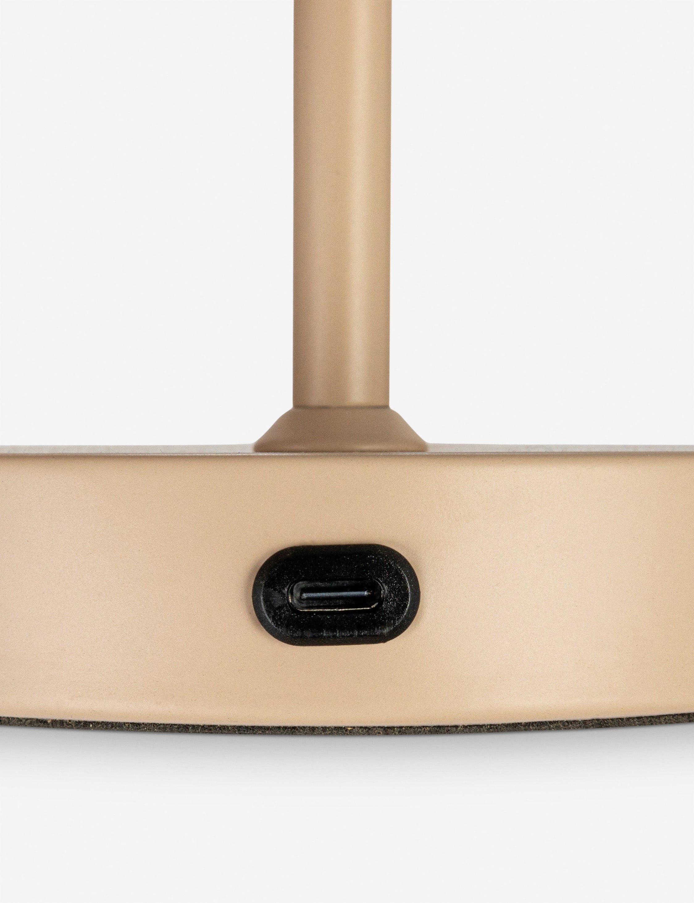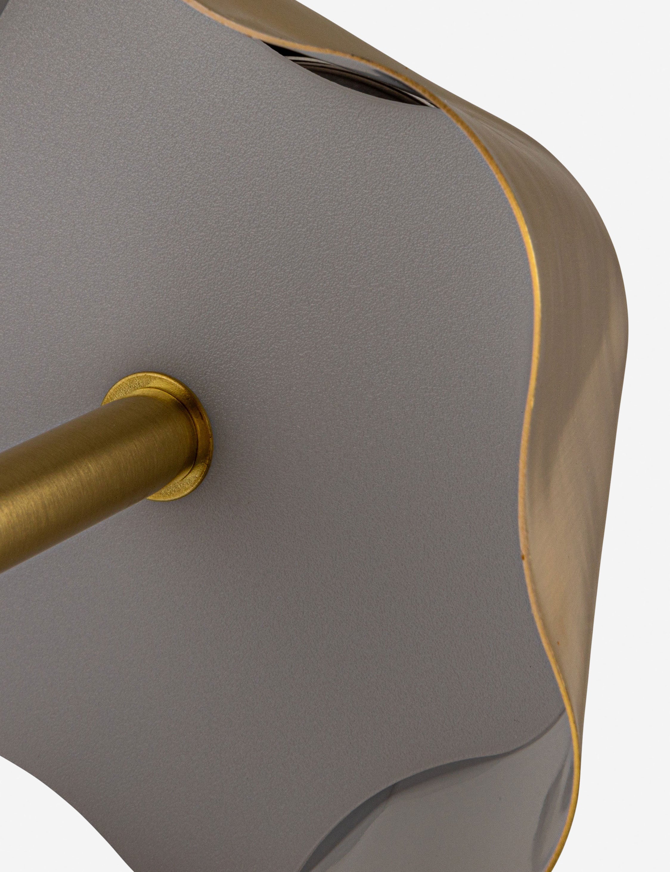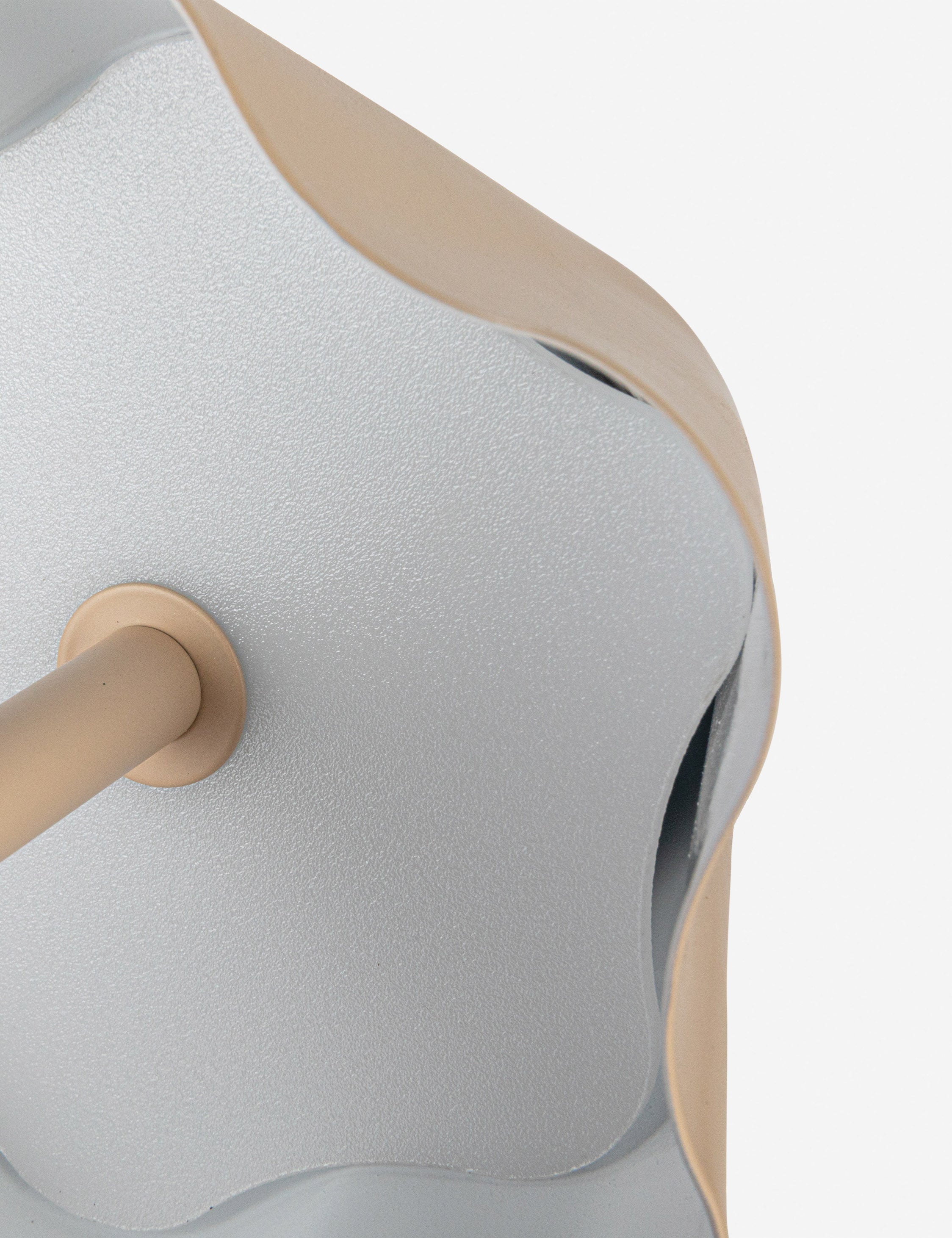 The Wickham lamp brings a touch of whimsy to tabletop light. A monochromatic finish highlights the slender silhouette, featuring a wavy metal shade and round base with a touch sensor for easy on/off functionality. The rechargeable design provides 9 hours of light so you can place these small lamps almost anywhere without worry of cords.